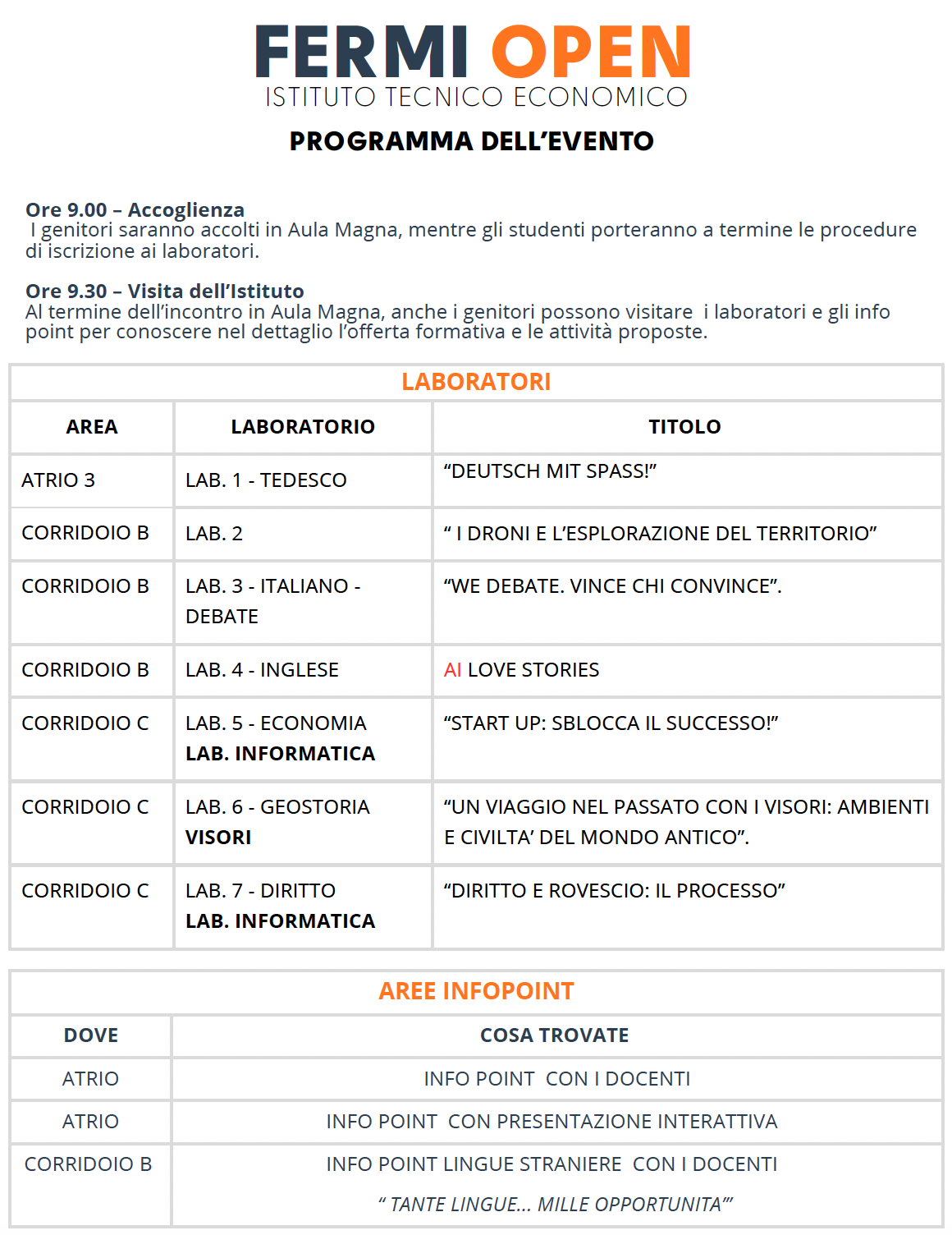 Sabato 13 Dicembre 2025 FERMI OPEN Istituto Tecnico Economico Scarica la presentazione: Fermi Open ITE